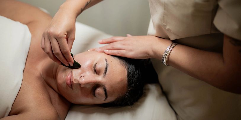 The Gua Sha facial promotes the movement of lymphatic fluid which therefore reduces swelling and puffiness in the face. Additionally, the massage encourages the delivery of oxygen around the face as well as improved hydration to the skin cells leading to a much healthier and glowing complexion.